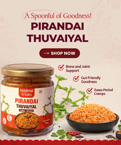 Made with real food - no preservatives, no artificial colors, just fresh pirandai and some wholesome ingredients